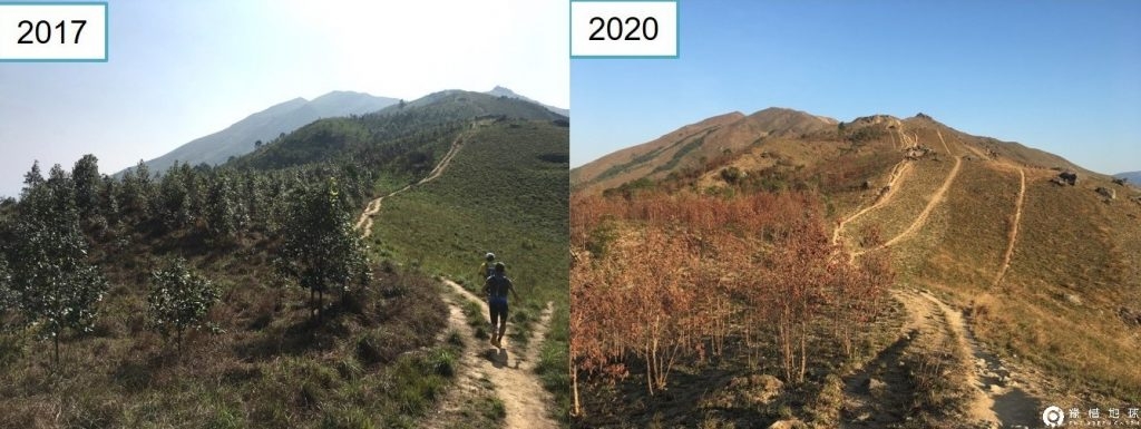Kai Kung Leng (Gui Kok Shan) is well known to experienced hikers. This imposing mountain on the Kam Tin Plain forms the backbone of the Kam Tin villages and is famous for its 360-degree views, sea of grass and breath-taking sunsets. However, over the years we have seen the area repeatedly damaged by hill fires, preventing the grass from growing back. Recently, the mountain has shown many visible “scars”.
