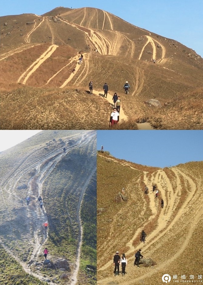Kai Kung Leng’s fragile topsoil means that wherever motorcycle tires pass, the vegetation and topsoil on the mountain slopes are easily stripped away, “scarring” the mountainside.
