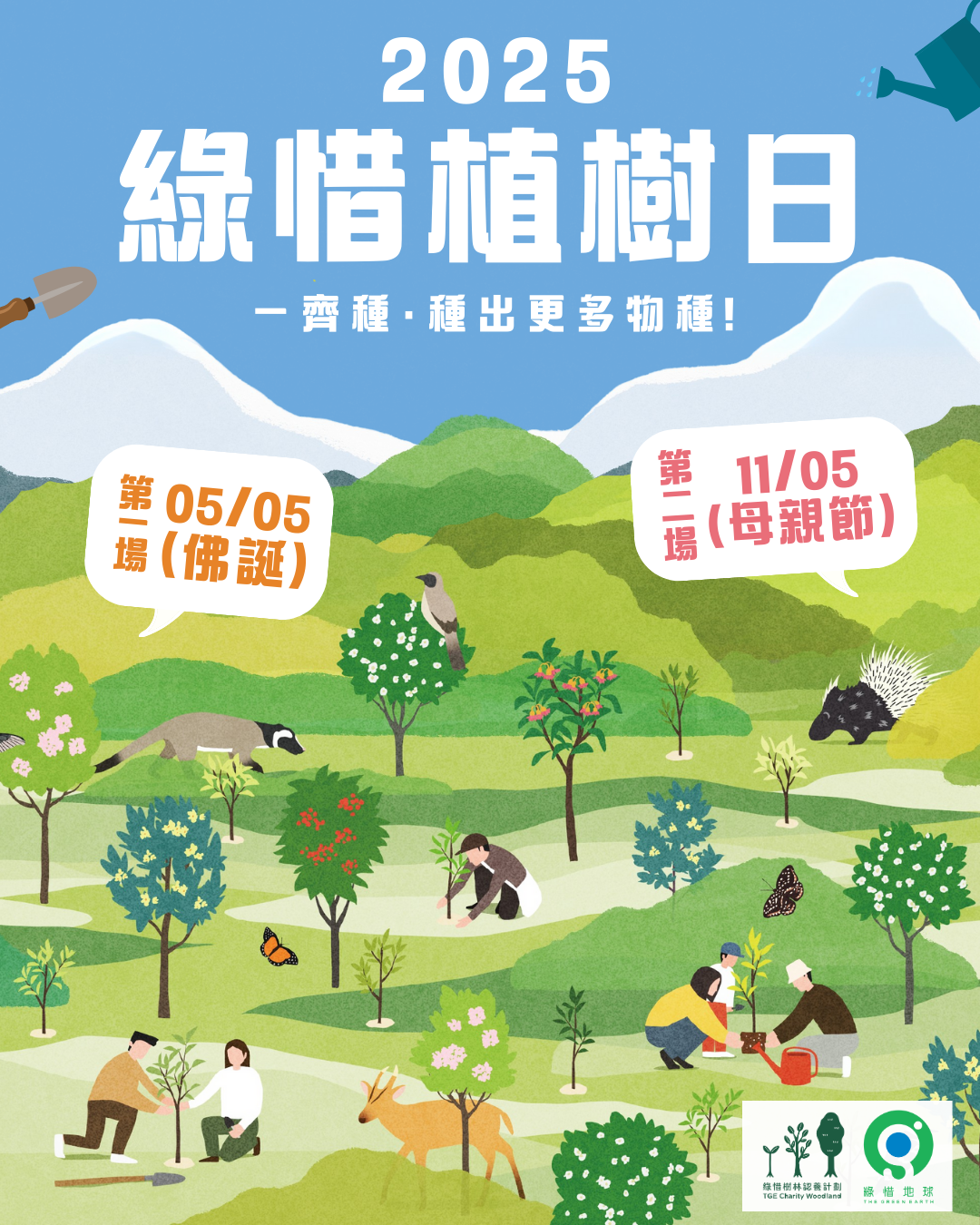 我們將於本年 5 月舉辦兩場 「綠惜植樹日」 ,透過植樹活動讓公眾認識「植林優化計劃」對生態環境的重要性和了解我們的植樹工作,更能親身體驗栽種本地原生樹苗和到訪大欖郊野公園,為永續香港郊野的自然生態,一起出一分力,共建綠惜樹林! 綠惜植樹日 2025 經已接受報名!